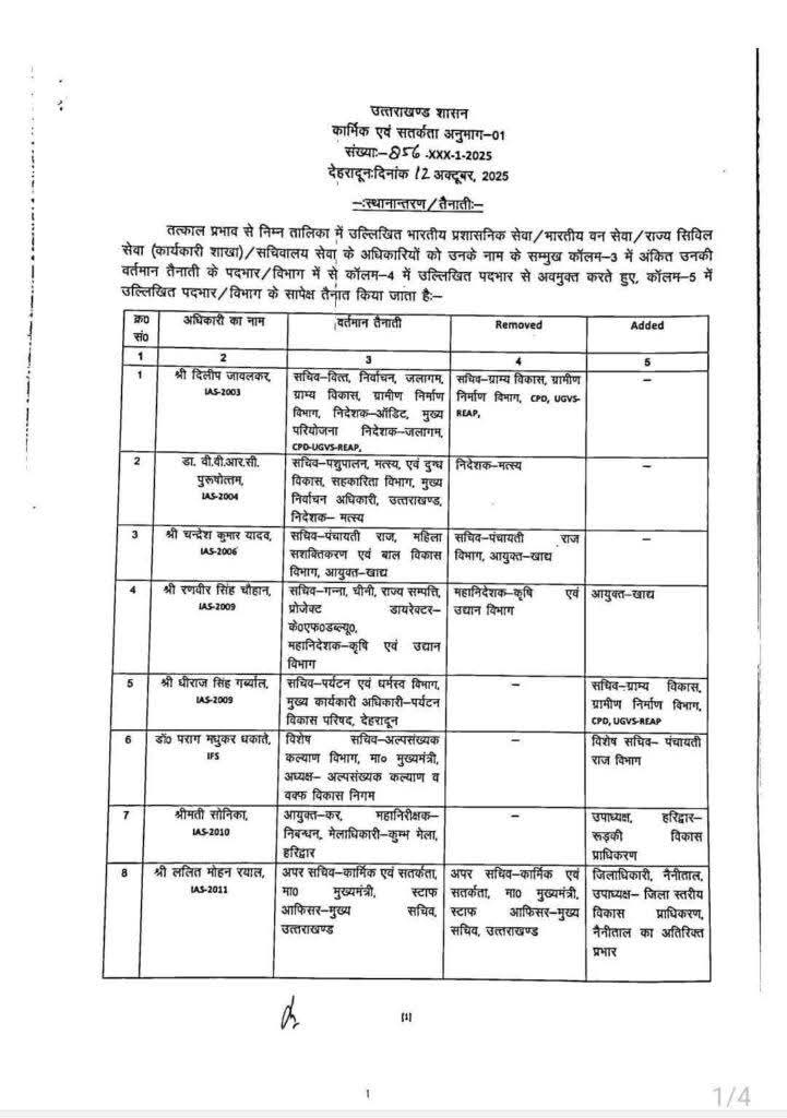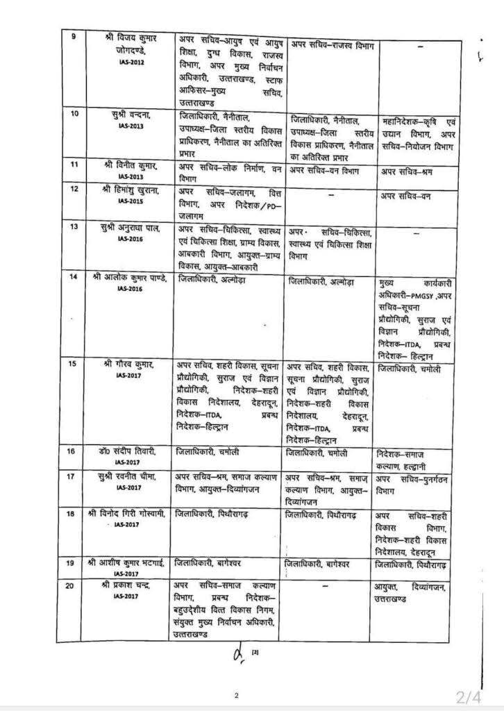 बिग ब्रेकिंग–उत्तराखंड में आईएएस अफसरों के बम्पर तबादले, कई जिलों में नयी तैनाती…