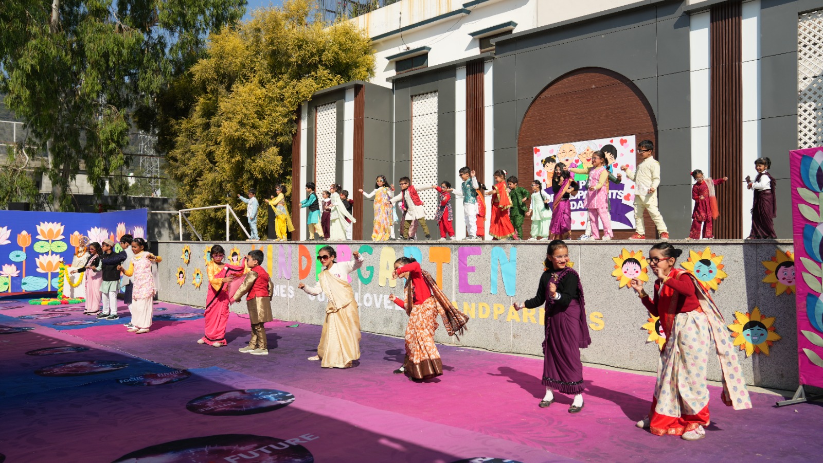 नन्हे-मुन्ने विद्यार्थियों ने अपने दादा-दादी व नाना-नानी के लिए मधुर गीत, मनमोहक नृत्य प्रस्तुतियाँ और प्रेरणादायक नाटक प्रस्तुत कर सभी को भावविभोर कर दिया। बच्चों द्वारा प्रस्तुत नाटक ने यह संदेश प्रभावशाली रूप से दिया कि “दादा-दादी और नाना-नानी संस्कारों के अमूल्य खजाने होते हैं।”