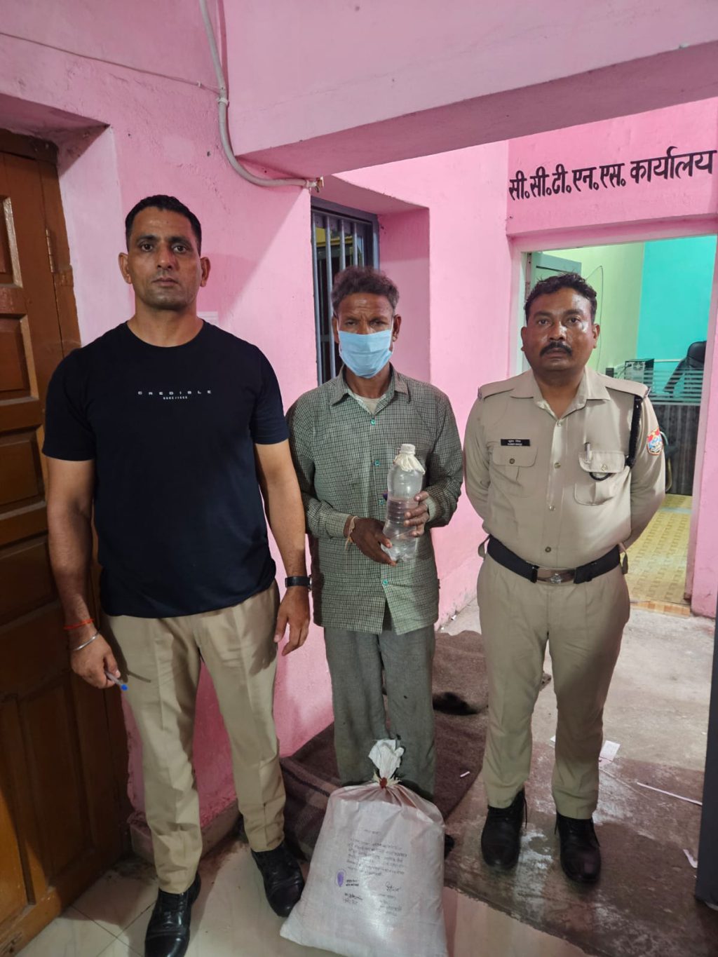 दिनांक 03 अक्टूबर 2025 को प्रभारी निरीक्षक श्री बृजमोहन सिंह राणा के नेतृत्व में गश्त के दौरान पुलिस टीम को सैनफोर्ट स्कूल से पहले ट्यूबवेल के पास एक संदिग्ध व्यक्ति दिखाई दिया। तलाशी लेने पर उसके कब्जे से एक प्लास्टिक के कट्टे में रखे 60 पाउच अवैध कच्ची खाम शराब बरामद हुई।
